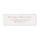 These return address labels feature a simple, elegant layout with ample negative space that highlights the text. The design uses a muted gray color palette and combines cursive script for names with clean, uppercase serif fonts for addresses, creating a sophisticated and formal appearance. Perfect for official communications or invitations, these labels offer customizability while maintaining a classic and understated look. Their minimalist style ensures clarity and elegance without any decorative elements.