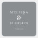 This elegant wedding sticker features a minimalist design with a muted gray background and crisp white text. The layout is centered, showcasing the names in a classic serif font with an ornate ampersand adding a touch of sophistication. Below, a simple "thank you" note complements the overall formal and refined aesthetic. Perfect for expressing gratitude at your special event, this sticker combines modern style with timeless charm.
