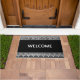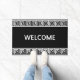 Elegant Greek Pattern on black Welcome door mat. Welcome text can be personalized.