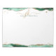 Personalized, elegant notepad with calligraphy script initials or monogram and name in green and gold with green agate and faux gold glitter border accents. CHANGES: The text font style, colour, size and placement can be changed by clicking EDIT for a custom look. ASSISTANCE: For help with design modification or personalization, colour change, resizing, transferring the design to another product or if you would like coordinating items, contact the designer BEFORE ORDERING via the Zazzle Chat MESSAGE tab below or email makeitaboutyoustore@gmail.com.