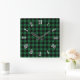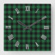 Elegant Green and Black buffalo plaid pattern wall clock with white numbers