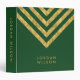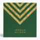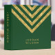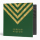 Elegant binder featuring faux gold chevron pattern against a green background that you can personalize with your name. Great for office or school.