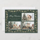Elegant green and gold photo Christmas card featuring a photo collage and gold holly on a dark green background. Easily personalize this photo holiday card with your favourite photos and the family name.