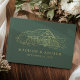 Add a touch of rustic elegance to your wedding ceremony with our Elegant Rustic Barn gold foil guest book. The design features a sketched illustration of a gold foil barn displayed at the top with a dark green background. Personalize the front of the barn wedding guest book with your names and the date. Add custom text to the spine such as your names, wedding date, etc. The back of the foil wedding guest book displays your horizontal engagement photo.