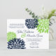 Elegant Green and Navy Blue Floral Burst Wedding Invitation