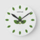Modern green bay tree leaves on almost white background Wall Clock. Text can be personalized.
