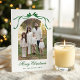 Send festive greetings with this elegant Christmas card featuring a watercolor green bow and ribbon design. The front highlights one favourite photo in an arch-shaped frame accented by the hand-painted bow, while the back includes a three-photo collage layout to showcase more holiday memories. Personalize with your name and message to create a timeless Christmas card that blends classic style with a modern multi-photo format.