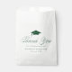 Modern graduation party favour bags featuring a green graduation cap at the top with "Thank You" displayed in an elegant calligraphy script. Personalize the graduation thank you favour bags with the graduate's name, graduation year, and a custom message.