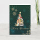 Elegant Green,Cat Pine Tree,Snowflakes Holiday Card