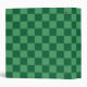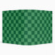 A green and dark green chequerboard pattern fills the image, creating a sense of symmetry and balance. The design is simple and has a calming effect.
