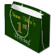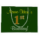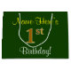 Elegant, Green, Faux Gold 1st Birthday + Name Large Gift Bag