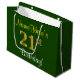 Elegant, Green, Faux Gold 21st Birthday + Name Large Gift Bag