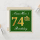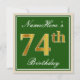 Elegant, Green, Faux Gold 74th Birthday + Name Invitation