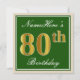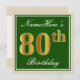 Elegant, Green, Faux Gold 80th Birthday + Name Invitation