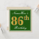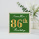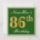 Elegant, Green, Faux Gold 86th Birthday + Name Invitation