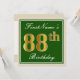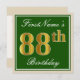 Elegant, Green, Faux Gold 88th Birthday + Name Invitation