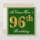 Elegant, Green, Faux Gold 96th Birthday + Name Invitation