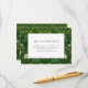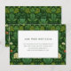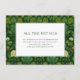 This elegant wedding enclosure card features a lush, botanical design with a dark green background adorned with stylized floral illustrations in lighter shades of green and cream. The central white bordered area provides a clean space for text, using bold serif fonts to highlight key details while maintaining an overall vintage theme. The asymmetrical layout adds a touch of sophistication, making it perfect for formal announcements. The muted yet rich colour palette evokes a sense of calm and refinement, ideal for conveying grace and anticipation on your special day.
