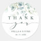 This thank you sticker features painted watercolor eucalyptus, botanical green, and light blue leaves with modern calligraphy.