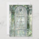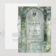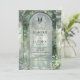 Elegant monogram wedding invitation featuring a beautiful, romantic, ornate watercolor garden-arch doorway scene with glass mosaics and greenery in emerald, olive, and sage green tones, showcasing your wedding details. Back with a delicate baroque style monogram crest with the couple's initials and the possibility to add more details, ideal for website, attire, or rsvp instructions, or you may leave the text section blank and complement the invitation with our coordinating enclosure cards. Refine design where classic sophistication meets modern charm. The design exudes timeless elegance, complemented by stylish wording in a blend of classic typography and delicate handwritten calligraphy. Part of our "Timeless Elegance Green" collection, this invitation pairs seamlessly with matching suite items and event stationery. Romantic, elegant, and unique. This template is easy to use and designed for couples who desire a wedding invitation that is as memorable as their love story.