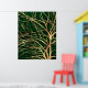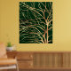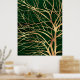 This chic hand-drawn faux shining gold glitter strokes tree shape and abstract emerald green watercolor brushstrokes is ideal for modern, minimalist luxury home decor, or special events, featuring a hand-drawn fall autumn tree silhouette with vibrant forest green, dark green blend watercolor striped wavy painting background.