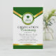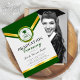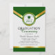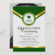 Cette cérémonie de remise de diplômes est décorée d'une élégante mise en page formelle de couleurs vert, gris clair et or avec un casquette de graduation vert et des étoiles vertes. Personnalisez votre propre photo de graduation à l'arrière de l'invitation.