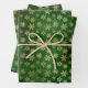 Elegant green gold foil snowflakes pattern festive wrapping paper sheet