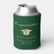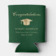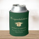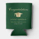 Toast the graduate at their graduation party with this elegant green can cooler featuring a gold grad cap, "Congratulations" in a classic script and the graduate's name, school and class year in modern typography.