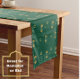 This elegant emerald green table runner features gold lanterns, shimmering stars, and a crescent moon. The pattern makes it suitable to use as part of Islamic Eid celebrations, or during the holy month of Ramadan. Stylish, modern and perfect for festive entertaining, this table runner will add sparkle and flare to your table!