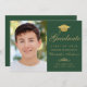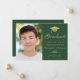 Elegant Green Gold Script Cap Photo Graduation Announcement