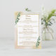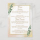 Elevate your wedding reception with this luxurious menu card. Part of our elegant green and gold collection, this design features shimmering gold glitter, soft watercolor textures, and realistic eucalyptus greenery. It’s the perfect way to present your culinary choices with style and sophistication. Customize this menu to display your food and drink options for a truly personalized guest experience.
