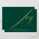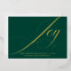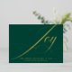 Share the spirit of the season with this elegant Joy Christmas card featuring a gold foil script design on a deep green background. The flowing typography and minimalist layout bring timeless sophistication to your holiday greetings.