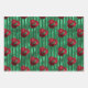Elegant Green Metallic Floral Stripe Wrapping Paper Sheet