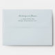This elegant envelope features a minimalist design with a soft, muted green color palette that exudes tranquility and sophistication. The layout is clean and centered, showcasing a cursive script for the names followed by a simple serif font for the address, creating a balanced and refined look. With ample negative space, the design emphasizes clarity and simplicity, making it ideal for formal announcements or special occasions where elegance meets understated charm.