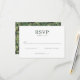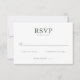 This RSVP card features a minimalist and elegant design with a clean white background, accented by a deep green colour palette. The layout includes bold serif typography for the "RSVP" heading, complemented by simple sans-serif fonts for clear readability. An ornate cursive letter adds a touch of sophistication, while checkboxes provide an interactive element for responses. Ideal for formal events, this card exudes a calm and professional tone, making it both practical and visually appealing.