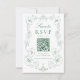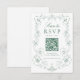 Elegant Green Ornate Floral QR Code Wedding RSVP Card
