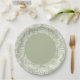 Elegant, pretty paper plates with a deep border of soft green paisley with hints of pink