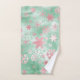 Elegant Green Pink Christmas Snowflake Pattern Bath Towel Set
