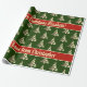 Elegant Green Red and Faux Gold Foil Christmas Tree Pattern with custom text Merry Christmas Elizabeth With Love from Christopher, you can change or delete all text, Christmas Gift Wrapping Paper, choose matte or glossy