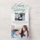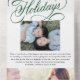 This unique holiday photo card design features a classic white background with a beautiful calligraphy script greeting in green with two photos. The inside of the card accommodates text and two photos, one large and one small horizontal photos. On the outside of the card is your return address. The photo is torn away and can be kept as a keepsake! Also, there is need to order envelopes - the outside of the card serves as an envelope!