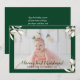 Elegant Green Script Magnolia Baby First Christmas Holiday Card