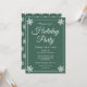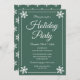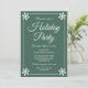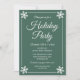 Festive holiday party invitation design features elegant "Holiday Party" script text and celebration details that can be fully personalized, framed by a stylish snowflake framed border. This two sided design features a snowflake pattern on the reverse side. The pine green background colour can be modified via Customize.