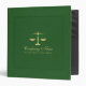 This binder features an image of a vintage green faux leather background with a gold-toned justice scale. The design is elegant and sophisticated, making it perfect for legal professionals or anyone who appreciates a touch of vintage charm. The text on the binder is customizable, allowing you to add your name or any other information you'd like. It's a great way to keep your documents organized while adding a touch of personality to your workspace.