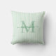 Elegant Green & White Stripes Monogram Name Throw Pillow