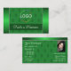 Elegant Green with Logo Photo and Monogram Pattern Business Card