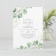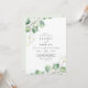 This elegant greenery casual wedding invitation is perfect for a simple wedding. The modern elegant design features a natural botanical arrangement of eucalyptus, leaves and plants with a subtle mint green watercolor wash accent.