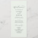 This elegant greenery coordinate wedding program is perfect for a simple wedding. The minimalist grey and mint green design features fancy romantic typography with modern glam style. Customizable in any colour. Keep the design minimal and classy, as is, or personalize it by adding your own graphics and artwork. Include the name of the bride and groom, the wedding date and location, thank you message, order of service, bridal party and an optional "in loving memory" memorial.