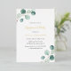 Elegant engagement party invitation with a simple design featuring watercolor painted eucalyptus greenery in the upper left corner and lower right corner along with "engagement party" and your names in real gold foil. The backside is a matching shade of medium sage green. This rustic botanical engagement party invitation with a modern twist is perfect for a spring or summer celebration.