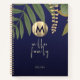 Elegant Modern Greenery Floral Family Recipe Book Gold Brushed Metal Family Monogram Initial Elegant Script Family Name Navy Blue Gradient Background Recipe Notebook
