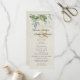 Romantic wedding program features framing of soft botanical green foliage. Warm soft shades of greens are back again for summer, and this ethereal palette proves it. Green willow, blush pink, warm gold and stony blue together create a tranquil combination that’s easy on the eyes. These tones intermix in an ethereal way, with a stony blue adding a bit of boldness. Shabby-chic décor, lots of soft textures, and greenery are a great complement to this inviting, palette. Simple yet elegant these designs are perfect for any celebration. These designs can be personalized for your special occasion and would be perfect for your wedding, bridal shower, engagement party, birthday party and many more special occasions.